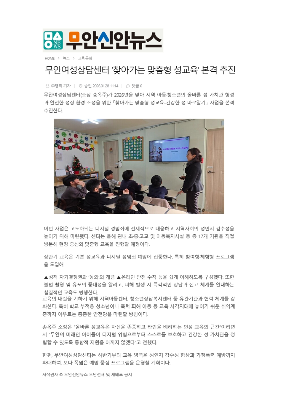 ¹«¾È¿©¼º»ó´ã¼¾ÅÍ, '2026 ã¾Æ°¡´Â ¸ÂÃãÇü ¼º±³À°' º»°Ý ÃßÁø