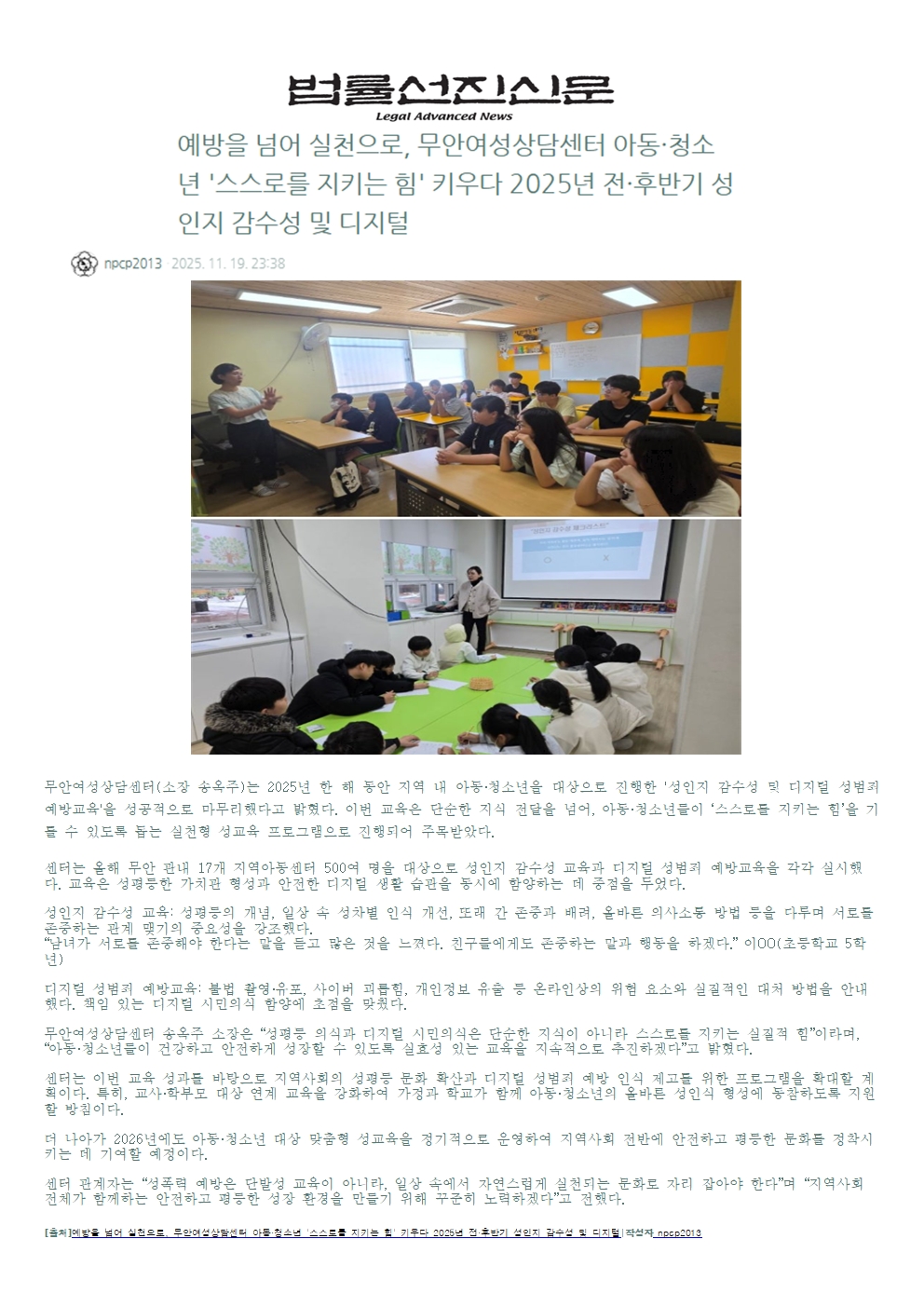 ¿¹¹æÀ» ³Ñ¾î ½ÇõÀ¸·Î, ¹«¾È¿©¼º»ó´ã¼¾ÅÍ ¾Æµ¿,û¼Ò³â' ½º½º·Î¸¦ ÁöŰ´Â Èû' Ű¿ì´Ù 2025³â Àü.ÈĹݱ⠼ºÀÎÁö °¨¼ö¼º ¹× µðÁöÅÐ